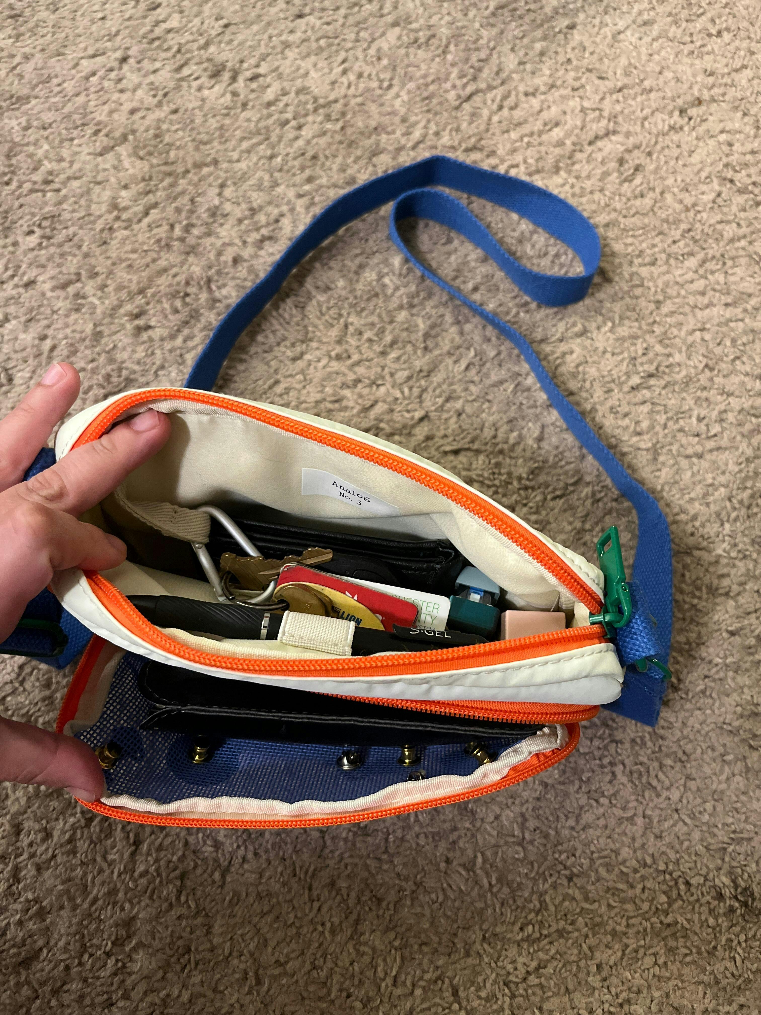 The Analog Mini Sidekick is made with a soft, puffy nylon material. To preserve its shape, functionality and quality, clean your bag by wiping it gently with a damp, warm, white towel and allow it to air dry. For tougher stains, wash by hand with a mild detergent.