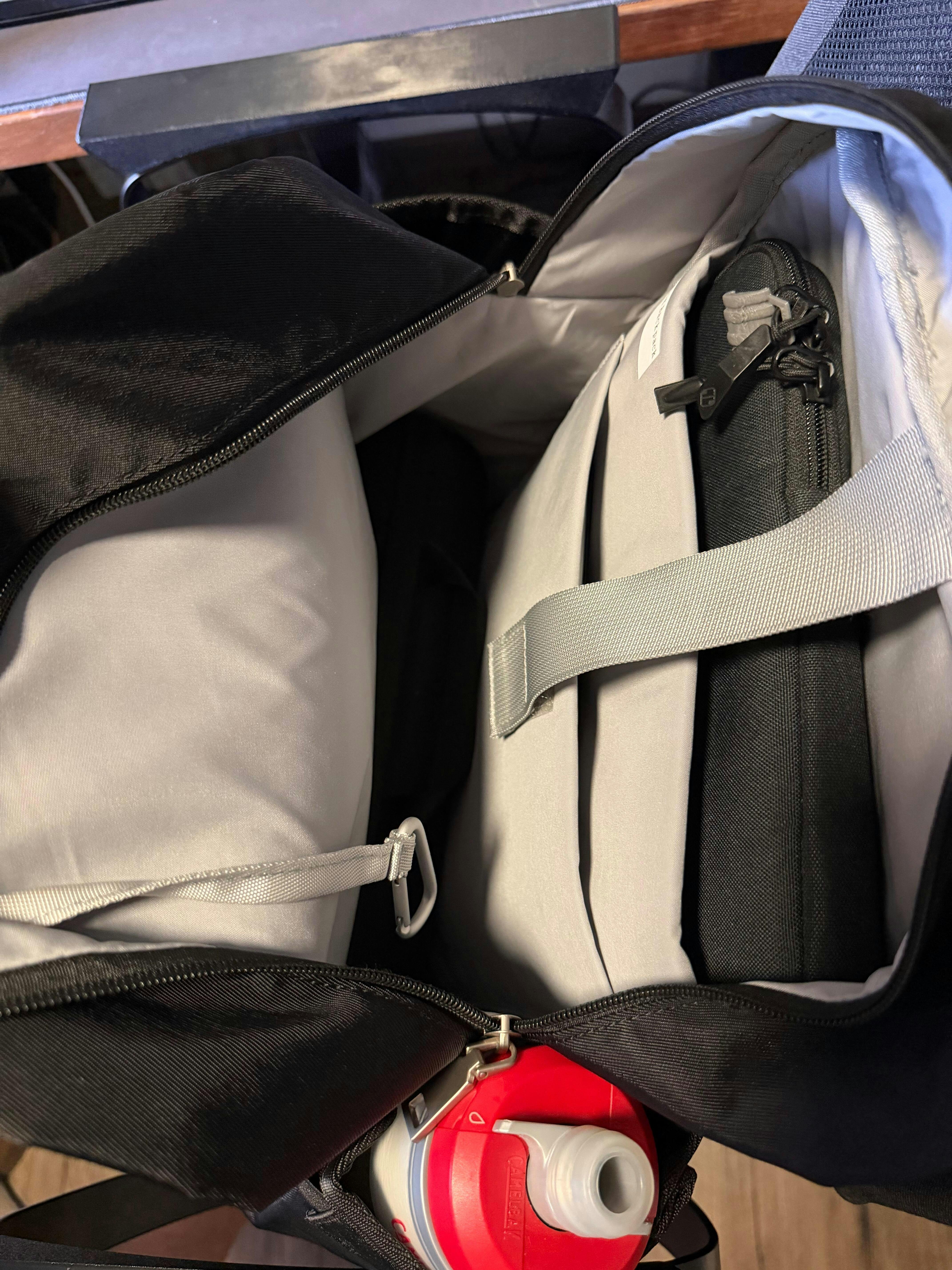 • Pockets on bag straps for small items (AirPods, bus cards)