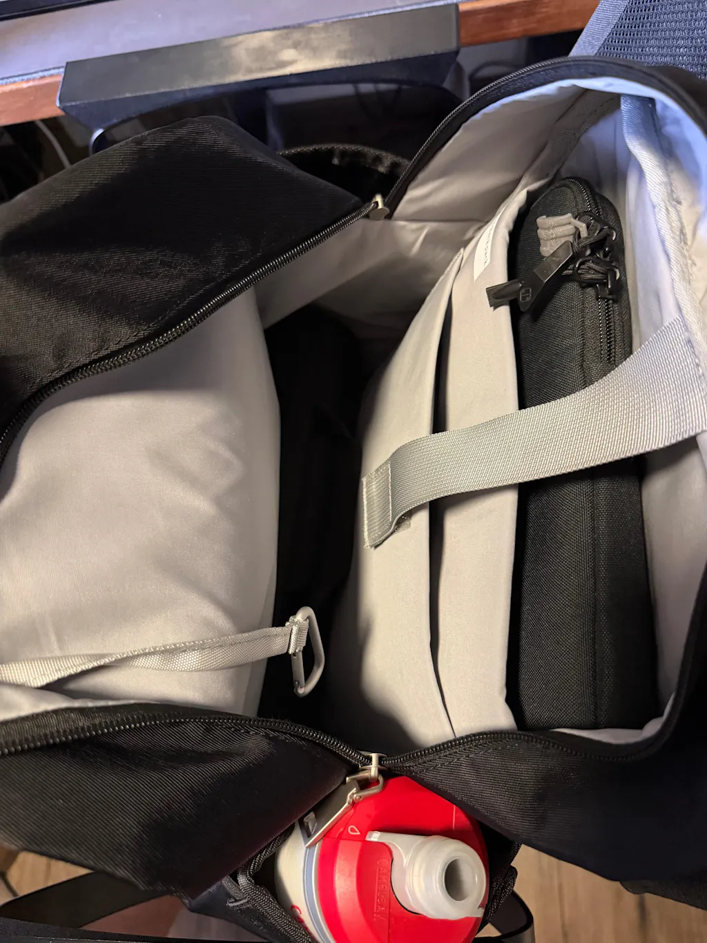 - Pockets on bag straps for small items (AirPods, bus cards)